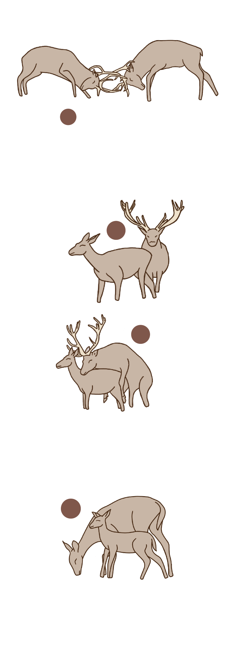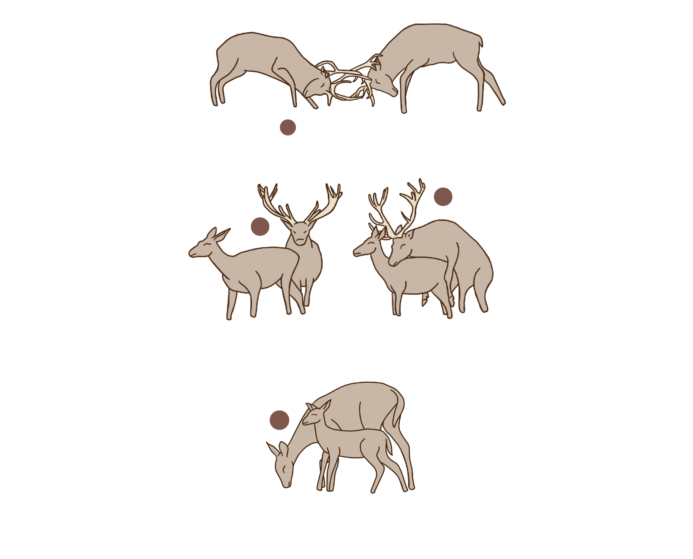 Se involucran en luchas físicas y utilizan sus astas, para atraer a las hembras y demostrar su fortaleza y capacidades combativas