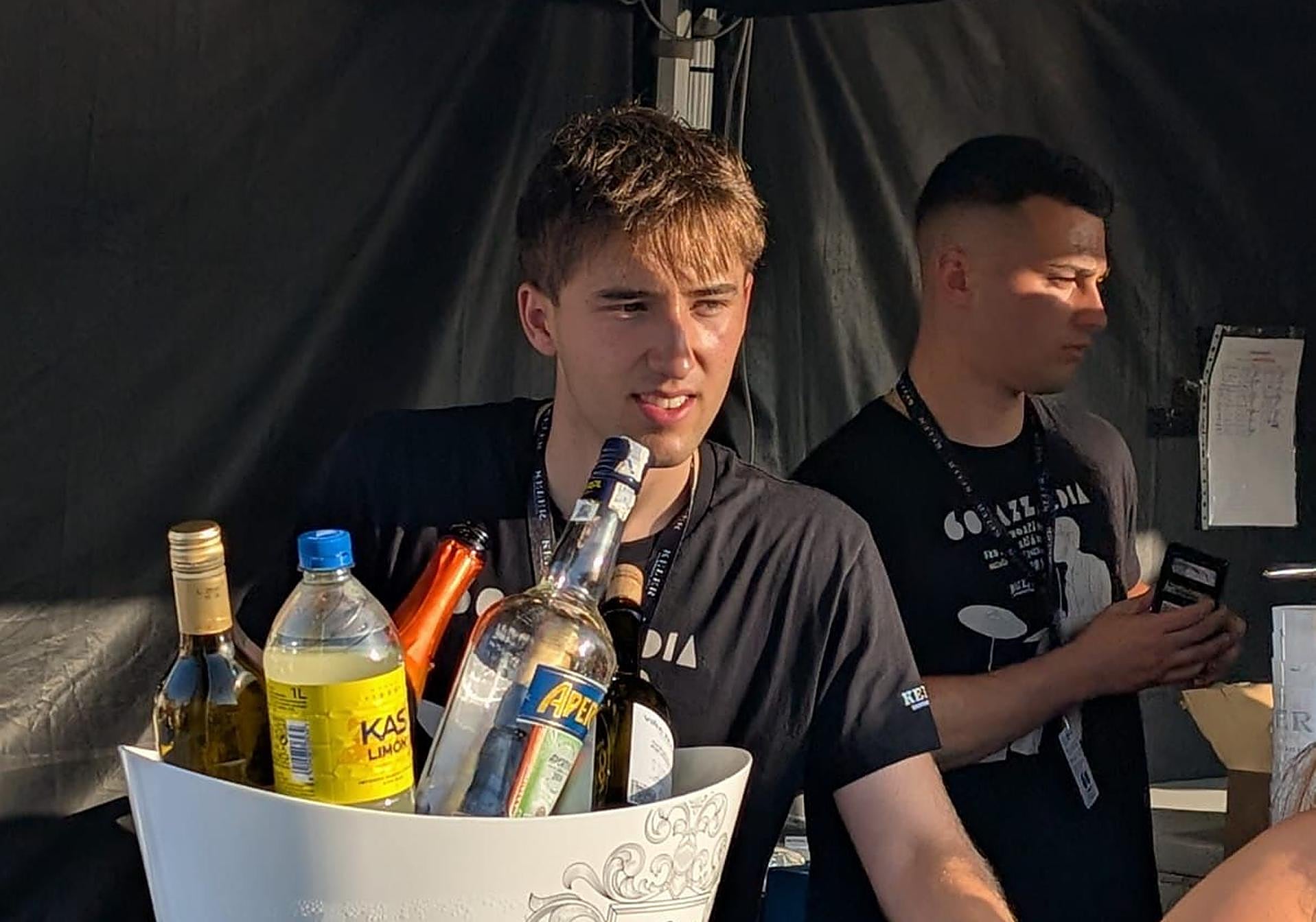 «Si bien el trabajo en el sector hostelero es realmente duro, hacerlo durante un corto plazo me permite ganar dinero pero también descansar el resto del verano», explica Alex, quien tras la finalización del Jazzaldia se encuentra disfrutando de sus vacaciones en un viaje con sus amigos.