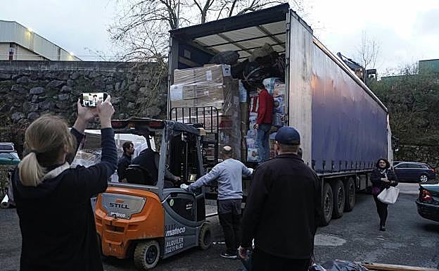 La asociación Ucrania-Euskadi se ha aliado con Guitrans y varias empresas del sector y ya han enviado quince camiones con material donado
