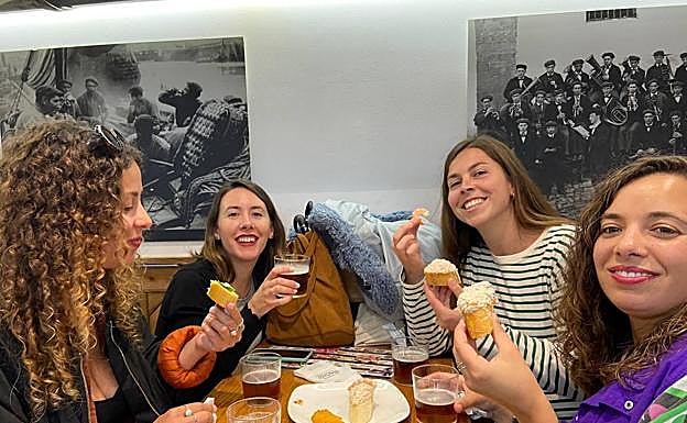 «Son bastante caros, sobre todo si comparas con los precios de allá, aunque había que probarlos sí o sí», defienden en coro en favor de estos platos en miniatura que atraen a miles de visitantes de todo el mundo motivados por la gastronomía. De lo que más se quejan es «del precio de la 'guagua' desde el aeropuerto hasta Zarautz, unos 15 euros, muy caro». Llegaron el miércoles en avión desde Fuerteventura, «aunque al menos los que estamos empadronados allí tenemos un descuento en los billetes del 75%. A mí el de ida me ha costado 40 euros y, el de vuelta, 57», explica Nagore con un pegadizo acento canario, aunque es nacida en Zarautz. Fueron sus amigas María y Marlene quien la «engañaron» para que se fuera a vivir a Fuerteventura.