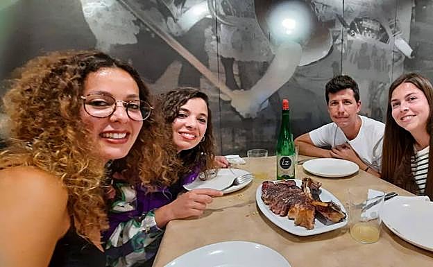 El día finaliza en la sidrería Izeta de Zarautz, repleta de amantes de la txuleta y la sidra. El menú escogido para cenar hace las delicias de este grupo. Yanire es una vez más la encargada de explicarles qué es el 'txotx'.