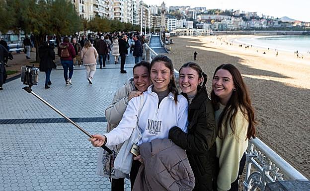 Muy cerca de ellos, cuatro jóvenes mañas buscan su mejor perfil para un selfie en común. Dos conocían la ciudad y otras dos no. «Lo que más me ha gustado es lo que yo llamo la biblioteca-el edificio consistorial-», dice Irene. «Bueno, el Peine del Viento es muy chulo», añade Susana. «Y las luces, la catedral...», van enumerando Natalia y Lucía. «Ajustamos nuestro presupuesto todo lo que podemos, así que solo hemos ido un día de pintxos y nos toca hoy como despedida», explica Irene. Las cuatro ya han mirado en la agenda cuándo podrán dedicar más días a Gipuzkoa. «Tenemos que volver, pero antes tenemos que ahorrar», bromean.