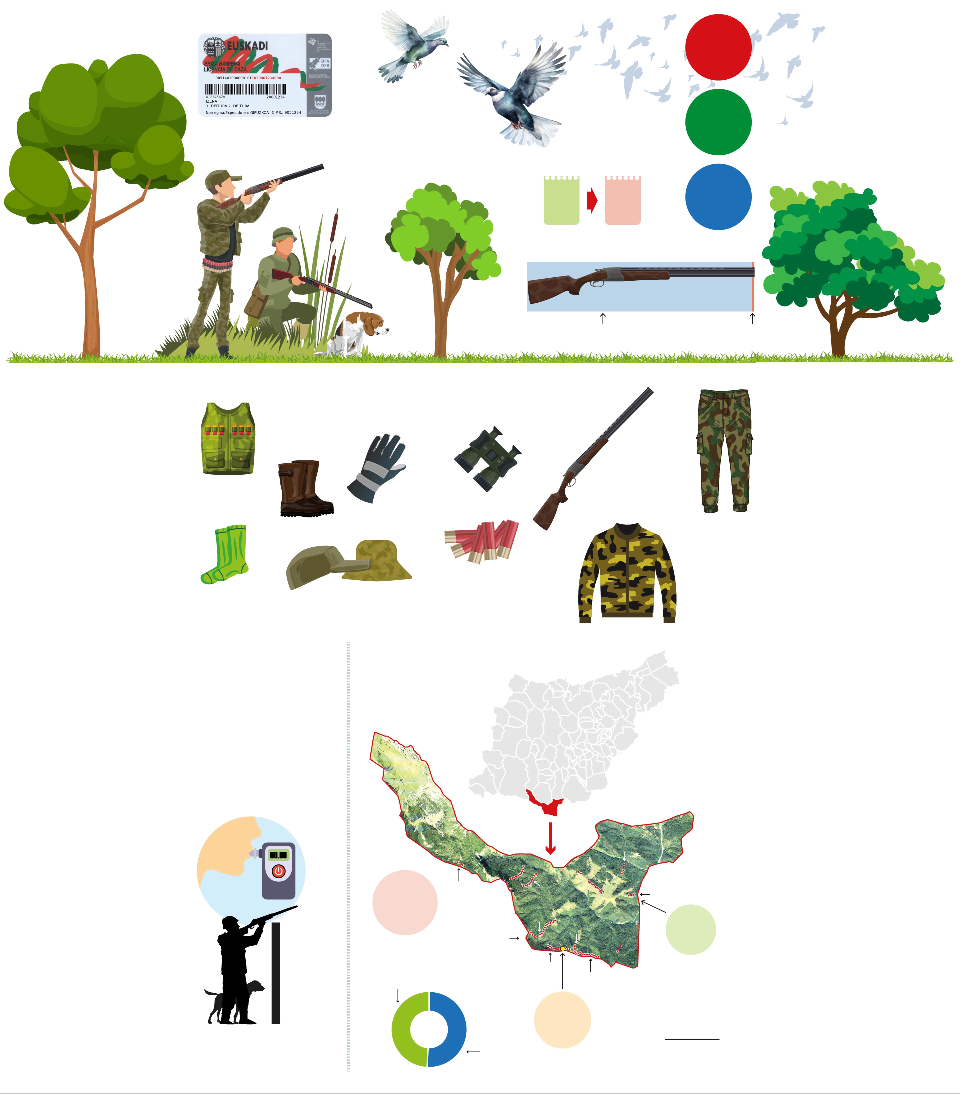 Para que nos hagamos una idea, el precio de un arma puede oscilar entre los 400 euros si es de segunda mano, y los 3.000 si apostamos por una nueva de gama alta. No obstante, las más comunes suelen costar alrededor de 1.200 euros. En cuanto a la ropa se refiere, una chamarra viene a costar entre 150 y 350 euros, un pantalón entre los 80 y los 150 y un chaleco entre los 60 y 120 euros. Las botas, por su parte, que generalmente suelen ser impermeables, andan entre los 90 y los 350 euros en función del modelo. A este gasto habría que sumarle el valor de los complementos que cada cazador decida añadir a su equipación y, por supuesto, el del combustible del vehículo que se utilice para el desplazamiento. En este caso las cantidades varían en función de la distancia a la que se encuentre el puesto asignado. «Cabe destacar que el desembolso principal se realiza una vez; a partir de la segunda ya desciende y solo hacen falta comprar cosas sueltas», matiza Rogel. En Gipuzkoa se trata de una caza social, lo que significa que por cada puesto se pagan entre 4 y 6 euros al día.