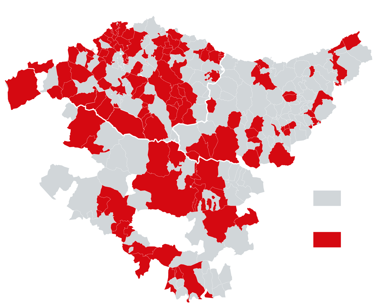 Estas localidades son Alkiza, Altzaga, Antzuola, Ataun, Aretxabaleta, Baliarrain, Elduain, Elgeta, Errenteria, Eskoriatza, Ezkio-Itsaso, Gabiria, Gaintza, Gaztelu, Hondarribia, Larraul, Lasarte-Oria, Leintz-Gatzaga, Mutiloa, Oñati, Ordizia, Orendain, Orexa, Pasaia, Segura, Zegama, Zestoa y Zumaia, según el inventario publicado hace unas semanas por el Gobierno Vasco en el que detalla la situación en la que se encuentra cada municipio.