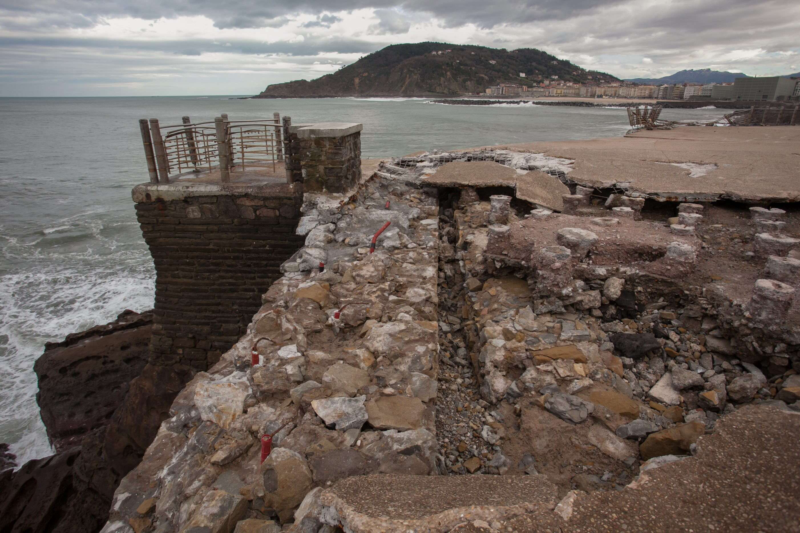 En La Concha, los golpes de las olas rompieron tramos de las barandillas en la primera rampa, así como en el Pico del Loro. Las instalaciones de la Talasoterapia, el Atlético San Sebastián, el gimnasio Hegalak y la discoteca y La Rotonda sufrieron graves daños.