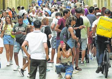 A las puertas de la Semana Santa, para la que apenas quedan tres semanas, se prevé la llegada de una oleada de turistas estatales y extranjeros a Gipuzkoa y, en consecuencia, también a San Sebastián, donde hay ciudadanos que muestran su preocupación al considerar que el turismo ha tocado techo en la ciudad y que tiene efectos negativos. Sin embargo, comerciantes y hosteleros del centro y la Parte Vieja tienen una opinión bien distinta y aseguran que los turistas, sobre todo los extranjeros, son su principal fuente de ingresos. Tanto es así que hay incluso quienes afirman que «sin ellos sería prácticamente imposible sacar el negocio adelante».