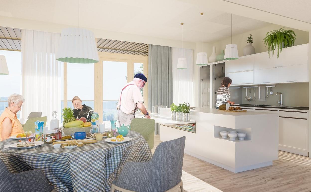 Peluquería y cafetería. Usurbil nace como un centro revolucionario a nivel de cuidados, prestando atención también al entorno que se genera alrededor de la residencia. Precisamente por eso, desde Matia apuestan por construir, junto al Ayuntamiento de Usurbil, un ecosistema de cuidados local integrado en el propio municipio, en coordinación con los servicios públicos, de proximidad y de contribución comunitaria. Con la idea de que sea un espacio abierto al vecindario, la residencia contará con una cafetería con vistas hacia el valle del Oria a la que podrá acceder todo aquel que lo desee, además de una peluquería. Ambas se situarán en un bajo.