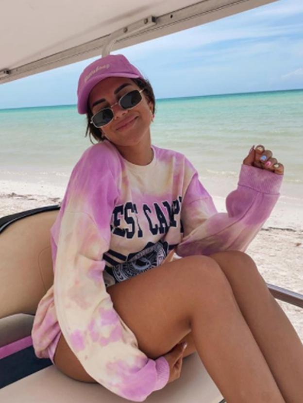 Poco a poco, estamos más cerca de volver a los días soleados, de sentir la arena en nuestros pies y bañarnos en el mar. Bárbara Pérez, junto a su grupo de amigas, ha podido disfrutar de estas vistas tan agradables. Por ello y aprovechando la jornada soleada, en su indumentaria no podía faltar una gorra, así como las gafas de sol cuadradas. Este 'outfit' que todos podemos usar durante los días de verano combina varias tendencias: la sudadera ancha en tonalidades rosas y con estampado 'tie-die'.