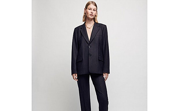 Maje apuesta all in por la sobriedad bien entendido con este traje de lana y cahemira. El pantalón tiene un precio de 195€ y la blazer está disponible por 350€.