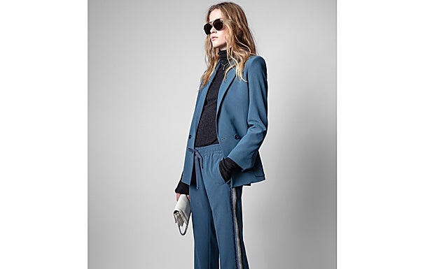 La firma francesa Zadig et Voltaire rompe con lo convencional y apuesta por un azul océano para este traje de chaqueta. El pantalón tiene un precio de 295€ y la chaqueta 445€.