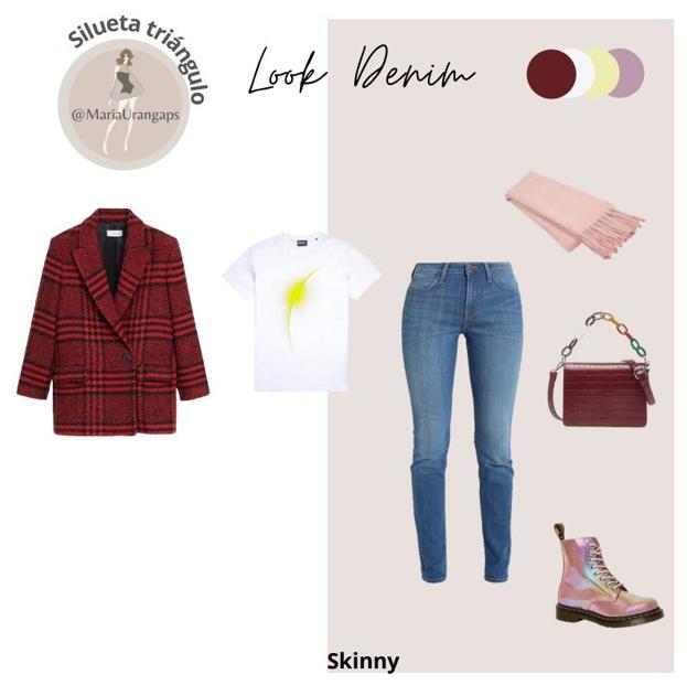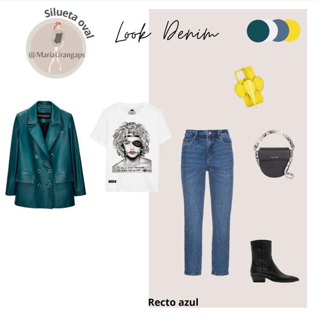 No nos olvidamos de la silueta 'oval', donde los hombros, la cintura y las caderas forman una figura redondeada. Por eso, es muy importante estructurar a la hora de vestir. Además, deberás jugar con el 'fit' o, lo que es lo mismo, el entalle, eligiendo diseños rectos o semientallados. Nunca abuses de los extremos, ni pantalones muy anchos ni muy pegados. Anímate con un vaquero 'straight' (recto) y rompe con complementos elegantes, sofisticados. ¡Tú eliges! Inspírate en el look que te proponemos.