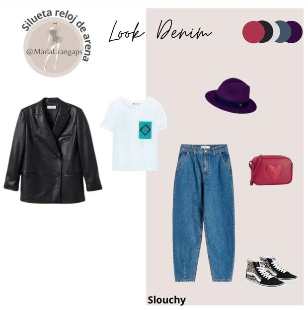 Si tu respuesta ha sido que tienes los hombros y las caderas alineadas con una cintura perfectamente definida, estás de enhorabuena, eres un 'reloj de arena'. Algo de agradecer, ya que casi todos los cortes de vaqueros se adaptan bien a tu silueta. Probablemente, si tienes algún problema a la hora de vestir será porque posees un armario acumulador, donde el exceso de prendas te puede hacer ir muchas veces vestida de la misma manera. Entonces, ¿por qué no innovar? Sabiendo a priori que le puedes sacar todo partido, te proponemos un estilismo protagonizado por unos vaqueros 'slouchy', con silueta algo abombada y el bajo algo más ceñido al tobillo. ¿Un consejo? Combinarlo por arriba con piezas no demasiado largas y, a poder ser, algo ceñidas para compensar volúmenes.
