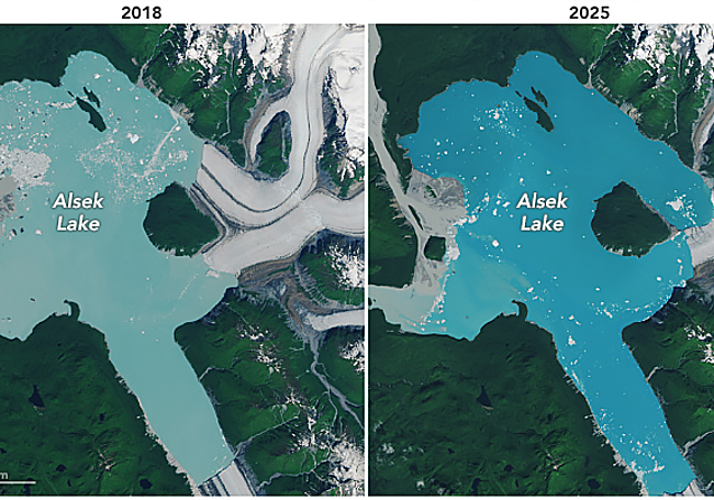 Desde 1984, ambos brazos del glaciar Alsek han retrocedido más de 5 kilómetros, mientras que el lago ha pasado de 45 a 75 kilómetros cuadrados. Junto con los lagos proglaciares Harlequin y Grand Plateau, los tres han más que duplicado su tamaño en los últimos 40 años, una señal clara del impacto del deshielo en Alaska.