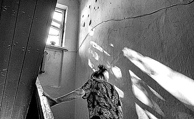 Un lugareño pasa junto a una casa destruida en el pueblo de Semyonovka, Ucrania oriental q