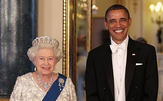 Afp Isabel II y el presidente de los Estados Unidos, Barack Obama, posan para los fotógrafos en la sala de música del Palacio de Buckingham antes de un banquete estatal que tuvo lugar en mayo de 2011 en Londres. En esa visita Obama y su esposa Michelle la regalaron una colección de fotos y textos relativas a la última visita de su padre, el rey Jorge VI, al continente americano. Algo que emocionó a la reina.