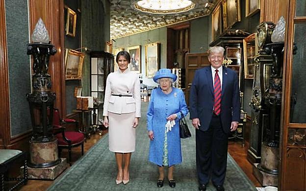 El expresidente Donald Trump visitó a la reina Isabel II en 2018 y fue acusado de cometer varios errores de protocolo. Llegó tarde a su encuentro en el castillo de Windsor, caminó delante de ella, le dio un apretón de mano en lugar de inclinarse y le dio la espalda.