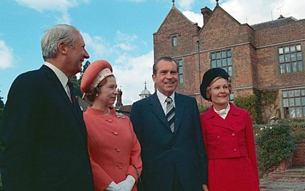 Richard Nixon Presidential Library En febrero de 1969, la reina y el presidente Richard Nixon tuvieron un encuentro por primera vez en el Palacio de Buckingham, aunque ya lo habían hecho cuando Nixon era vicepresidente. Los años siguientes volvieron a verse.