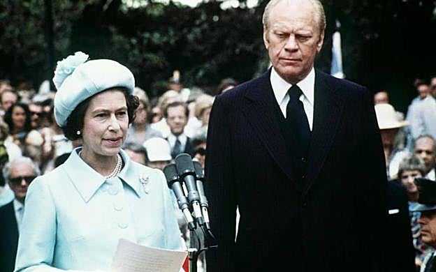 Afp En julio de 1976, la reina Isabel II visitó la Casa Blanca con motivo de las celebraciones del Bicentenario de la Declaración de Independencia de los Estados Unidos. «Si no hubiera seguido mezclando su alteza y su majestad (él es su alteza, ella es su majestad), me daría cuatro estrellas por la forma en la que se produjo la visita», escribió la primera dama Betty Ford sobre la cena en sus memorias.