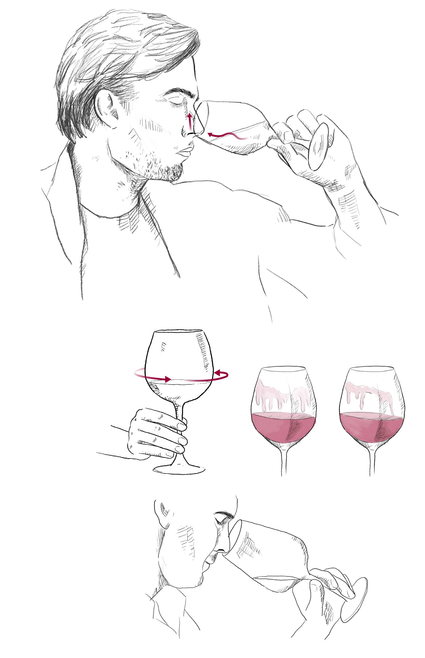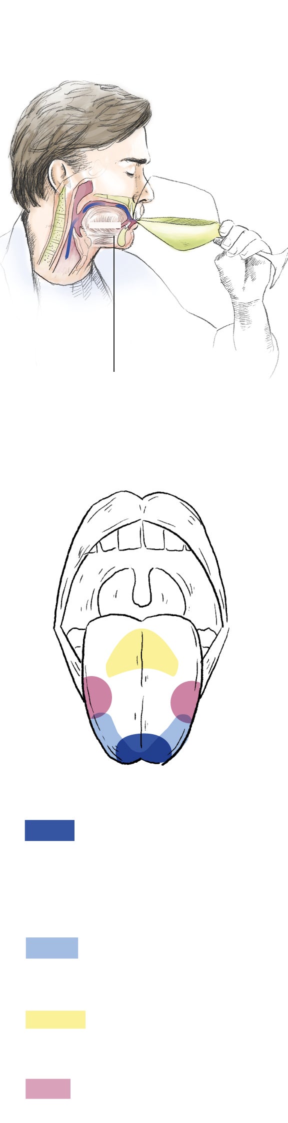 Después de visto y olido, llega el que para la mayoría es el momento más placentero. Probarlo. Es recomendable retener el vino durante algunos segundos en la boca para que revele su textura, consistencia, untuosidad y cuerpo. «Lo primero es la sensación táctil. Si percibimos seda, terciopelo, lija... Hay que pasar el vino entre el labio de arriba y la encía, donde hay mucha sensibilidad, para ver si pasa suave o agarrado», relata.
