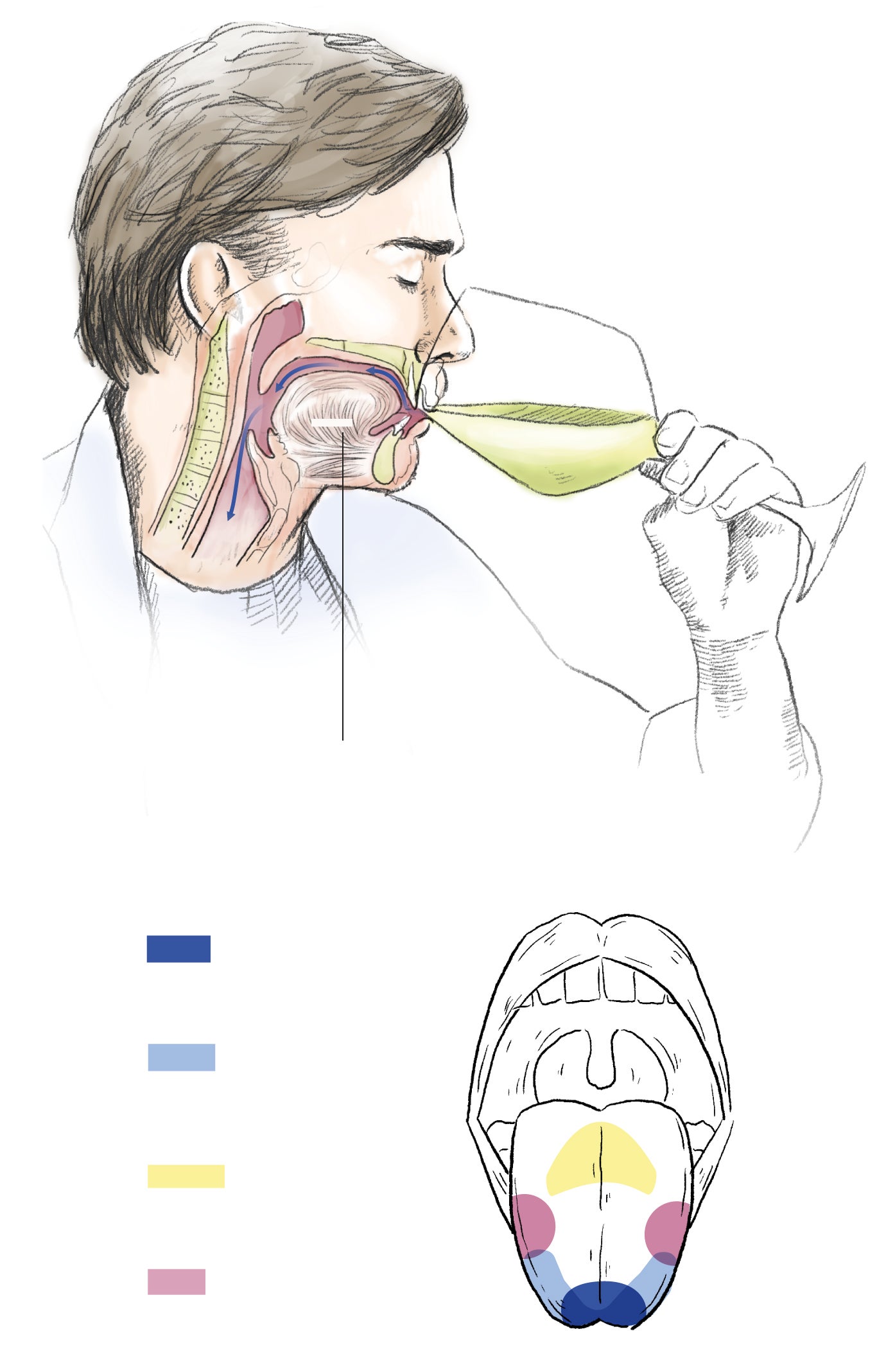 Intente fijarse en los cuatro sabores básicos, que no se sienten todos al mismo tiempo y en la misma parte de la lengua