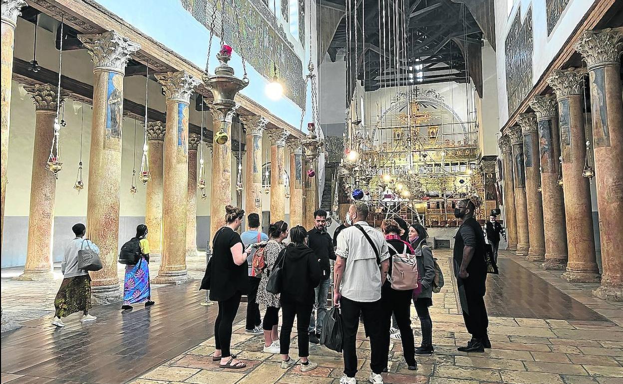 La Basílica de la Natividad acoge un puñado de visitantes extranjeros, a diferencia de la época prepandemia en la que solían llenar la ciudad. m. a.