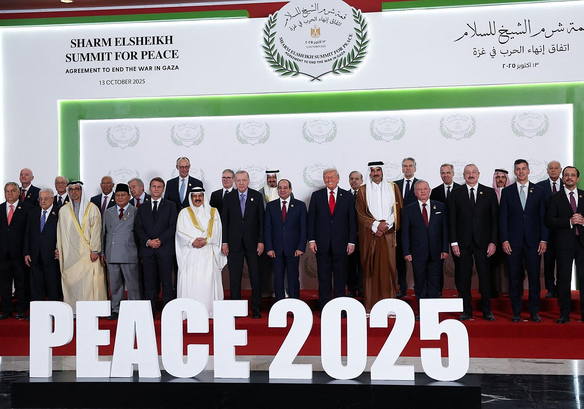 El inesperado invitado que posa con Donald Trump en la foto de familia de la cumbre de paz de Gaza: Gianni Infantino