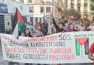 Cientos de personas muestran su apoyo al pueblo palestino en Donostia