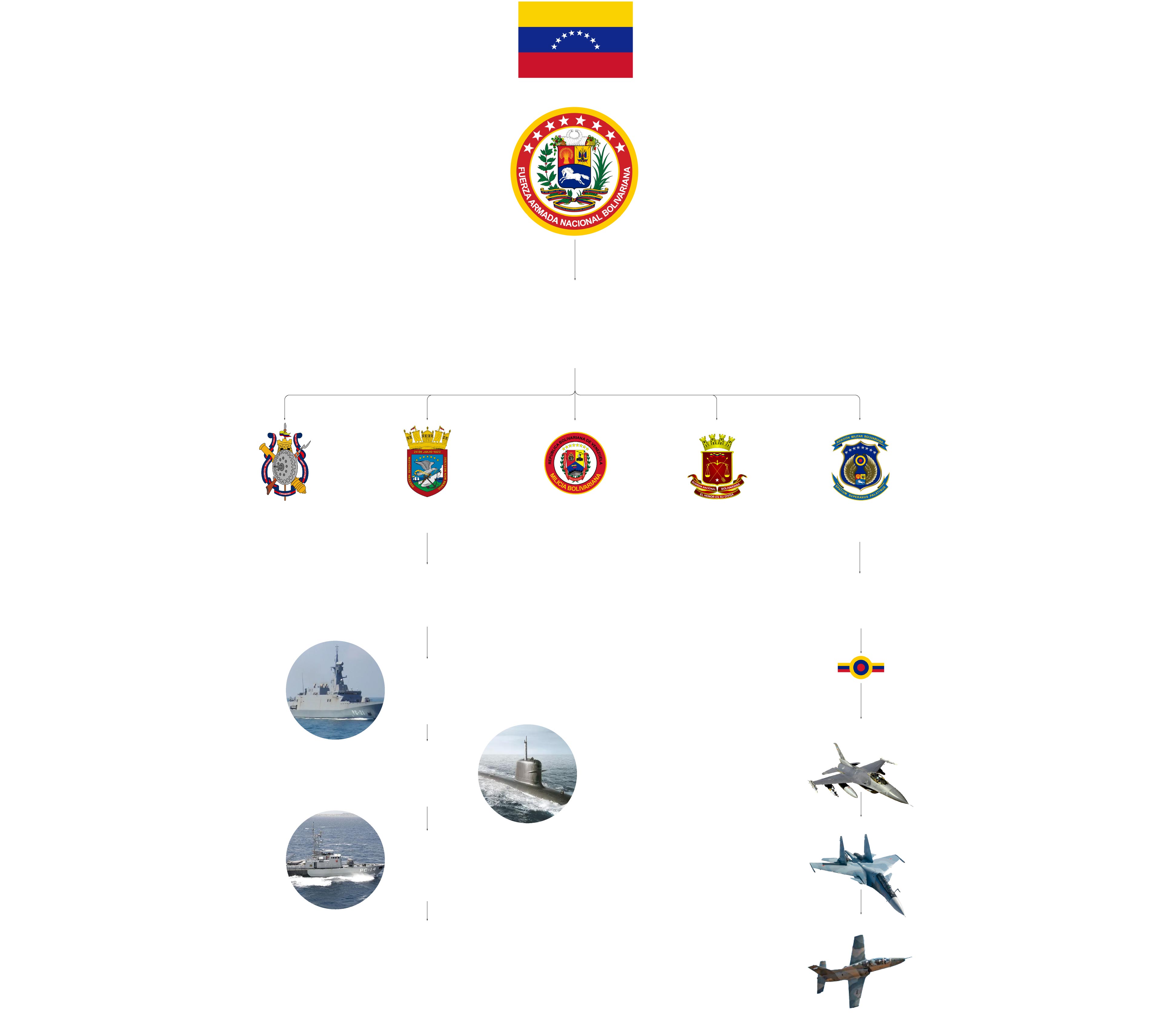 Si ya de por sí Venezuela no parece un rival formidable, aún lo es menos si se tiene en cuenta el estado en el que se encuentra ese armamento. Prácticamente sin acceso a componentes para el fabricado en Occidente, los analistas coinciden en que ya no será utilizable. Y, a juzgar por la petición de ayuda que cursó al jefe del Kremlin, Vladímir Putin, hace unas semanas, tampoco el ruso –en el que destacan los aviones Su-30 y los tanques T-72– debe estar en las mejores condiciones. De hecho, Global Firepower calcula que solo 17 cazas, 6 helicópteros de ataque, 22 piezas de artillería MLRS y 1 fragata están utilizables.