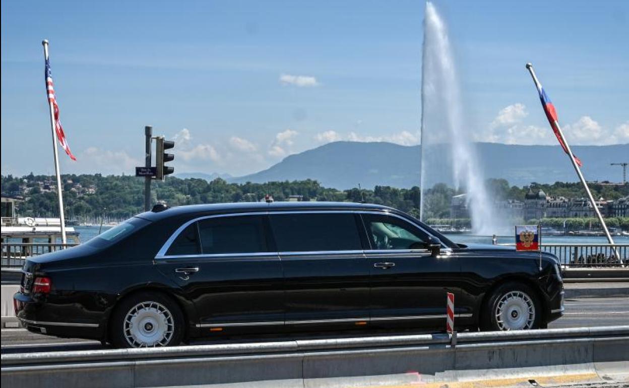 Sin embargo, en Ginebra varió su estrategia, a pesar de que llegó al aeropuerto de la ciudad suiza sólo treinta minutos antes del inicio de la reunión a bordo de su avión presidencial, un Iliushin-96 blanco con el logotipo 'Rossiya' (Rusia) en el fuselaje, además de dos banderas de sus país pintadas, una en la cola y otra longitudinal a modo de cinta. Denegó ser recibido en la pista por el alcalde y otras autoridades locales, como sucedió el día anterior con Biden, porque no se trataba «de una visita de Estado bilateral con las autoridades helvéticas» y se dirigió de inmediato a Villa La Grange (El Granero, en francés), sede del histórico encuentro.