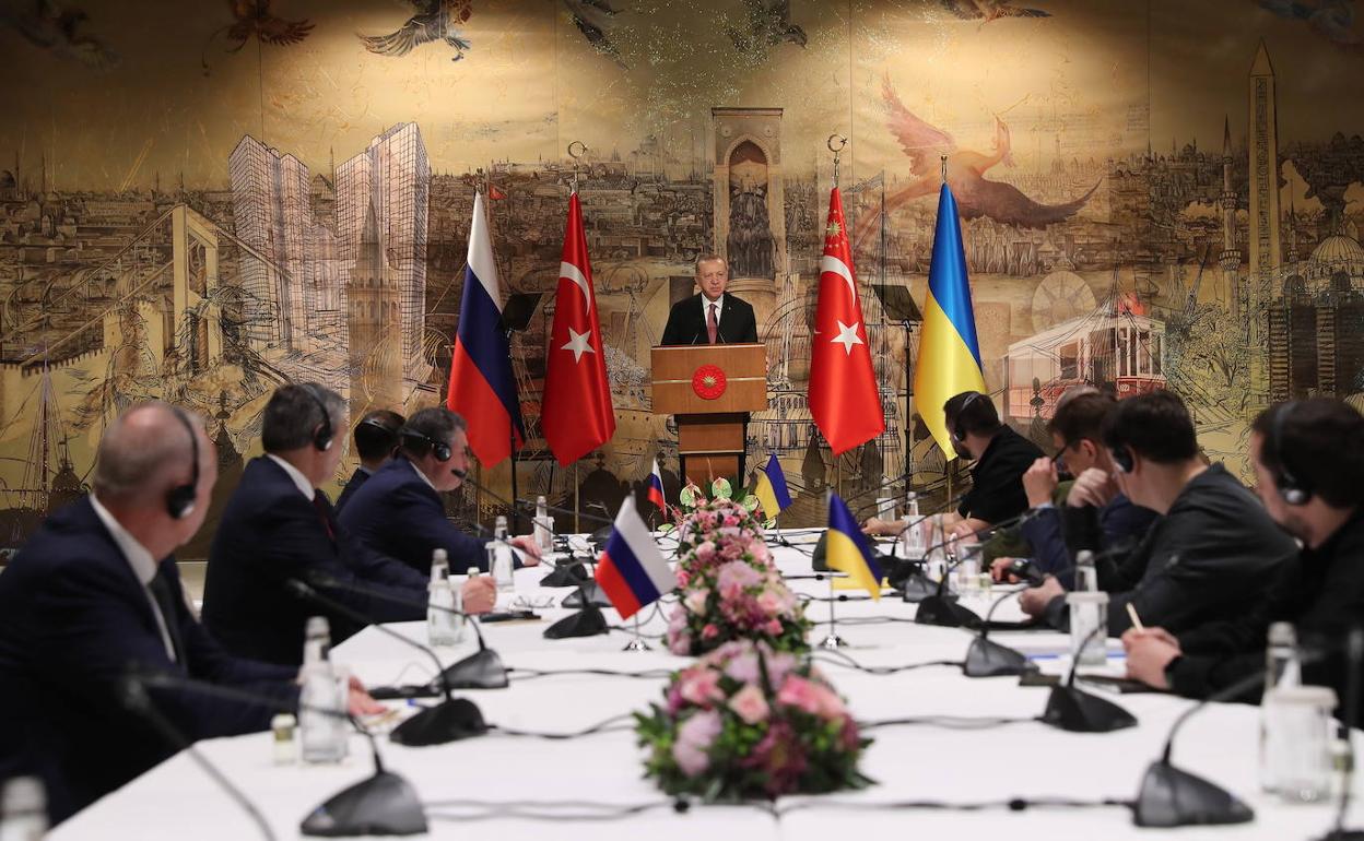 Las negociaciones de este martes en Estambul duraron unas tres horas y comenzaron con una breve alocución dirigida a ambas delegaciones por parte del presidente turco, Recep Tayyip Erdogan. Aunque no forma parte del equipo negociador, estuvo presente el conocido oligarca ruso Román Abramóvich que departió animadamente con Erdogan, si bien se mantuvo al margen de la negociación. Tras los rumores sobre su supuesto envenenamiento, desmentido este martes por el portavoz del Kremlin, Dmitri Peskov, Abramóvich dijo encontrarse bien. El ministro de Exteriores turco, Mevlut Cavusoglu, manifestó que «se ha alcanzado un entendimiento mutuo y un consenso en algunos asuntos, los progresos más significativos se han logrado precisamente hoy -por este martes-» en Estambul.