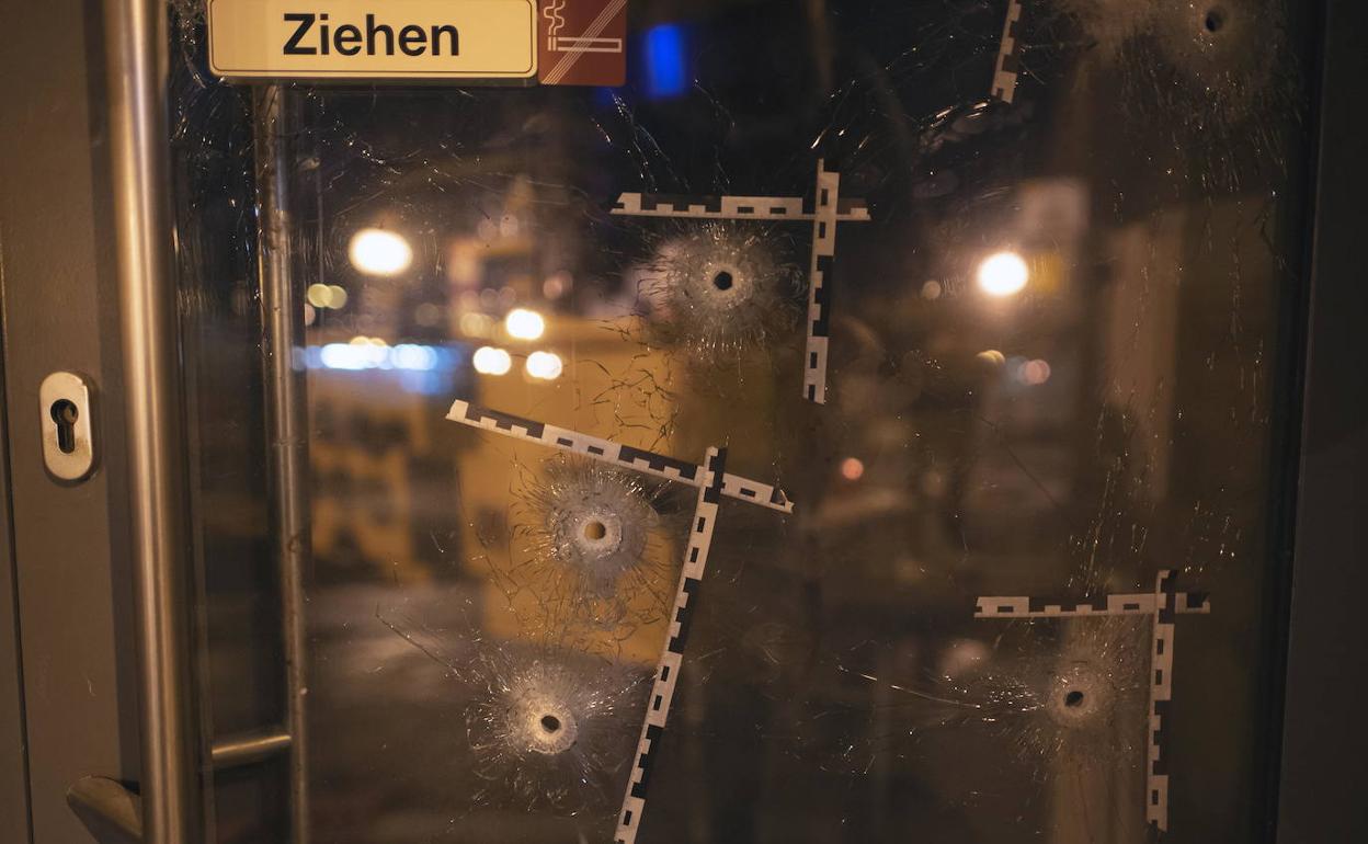 Agujeros de bala en un escaparate del centro de Viena, en el lugar de uno de los ataques terroristas realizados el lunes por la noche. efE