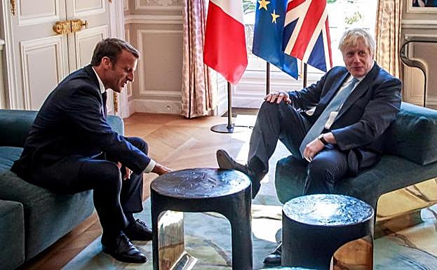 Boris Johnson se encontró este jueves con un hueso duro de roer en el palacio del Elíseo. Después de las esperanzas que albergó tras su encuentro el miércoles en Berlín con la canciller Angela Merkel, que mostró cierta flexibilidad para volver a escuchar propuestas sobre los puntos más espinosos del Acuerdo del 'brexit', como el de la frontera de Irlanda, el presidente francés le recibió en París con cordialidad pero con un discurso inamovible: el Acuerdo es el que es y si en el próximo mes se encuentra una alternativa para la salvaguarda sobre Irlanda tendrá que ser dentro de ese marco.