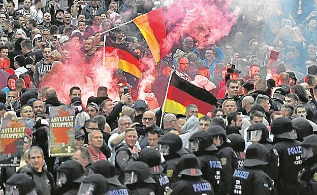 A la populista Alternativa para Alemania (AfD) se le ha caído la fachada de partido burgués y no oculta ya sus tendencias ultranacionalistas, cuando no ... neonazis, del todo evidentes desde este pasado fin de semana. La marcha silenciosa y fúnebre que organizó el pasado sábado en la sajona localidad germano oriental de Chemnitz por la muerte a puñaladas en una reyerta del alemán de raíces cubanas y 35 años Daniel Hillig marca un antes y un después en la política de la formación nacida en 2013 como movimiento euroescéptico y que desde entonces ha degenerado hasta convertirse en un partido abiertamente xenófobo y con aspiraciones totalitarias, que cada vez cuestiona mas el estado de derecho. Y que está decidido a imponerse a cualquier precio y a instrumentalizar todo suceso en el que, como en el caso de Hillig, estén implicados refugiados o extranjeros para criticar la política de asilo del Gobierno de la canciller federal, Angela Merkel, y la capacidad del Estado para garantizar la seguridad ciudadana. Da igual que Hillig, hijo de un cubano y una alemana, votara habitualmente a partidos de izquierda y simpatizara con los grupos antifascistas. La AfD lo ha convertido en un nuevo mártir de la política de bienvenida de Merkel, toda vez que los detenidos por el crimen son dos jóvenes sirio e iraquí.