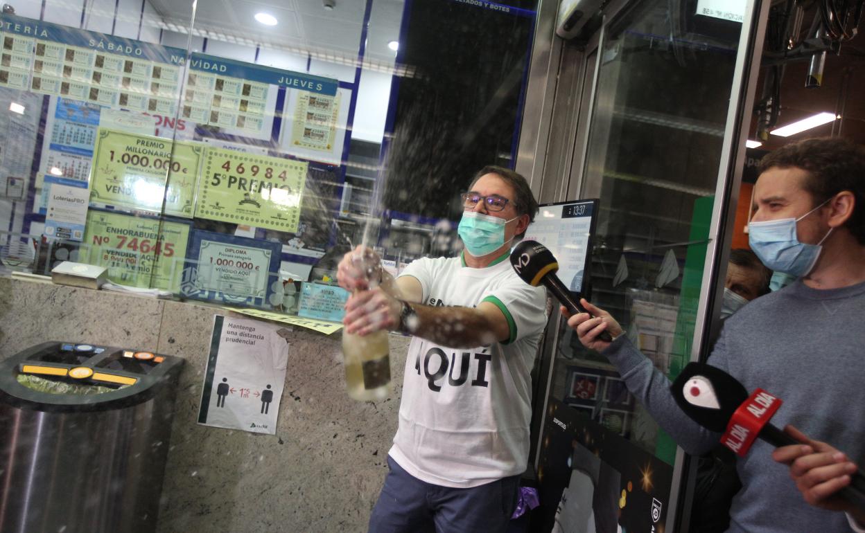 Javier Moñino, trabajador de la administración, celebra el 'Gordo'. Pablo cobos/ r. c./ VÍDEO: ATLAS
