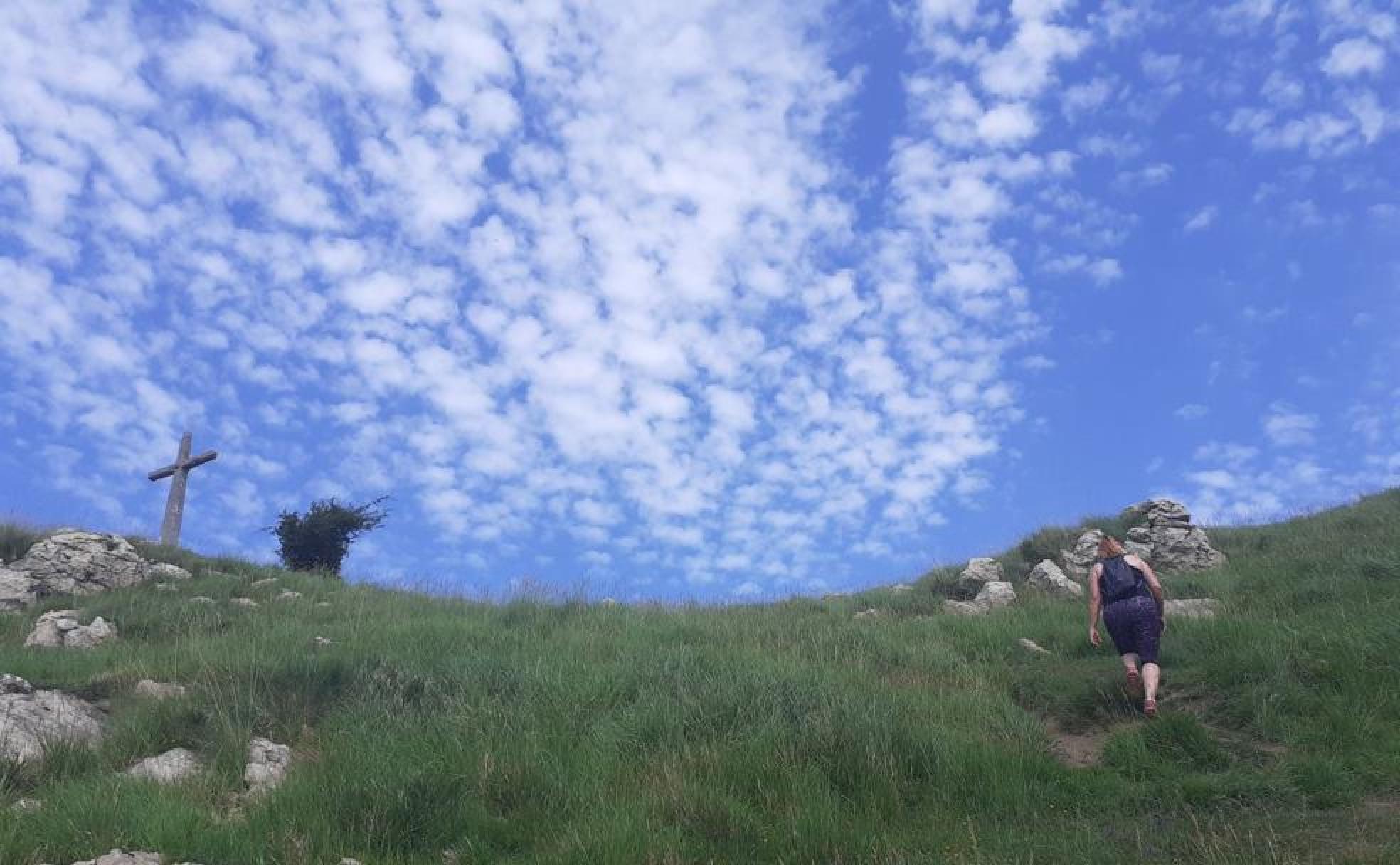 Esta sencilla cima, presidida por una cruz y que cuenta con dos buzones, nos sorprende con su preciosas vistas al Cantábrico