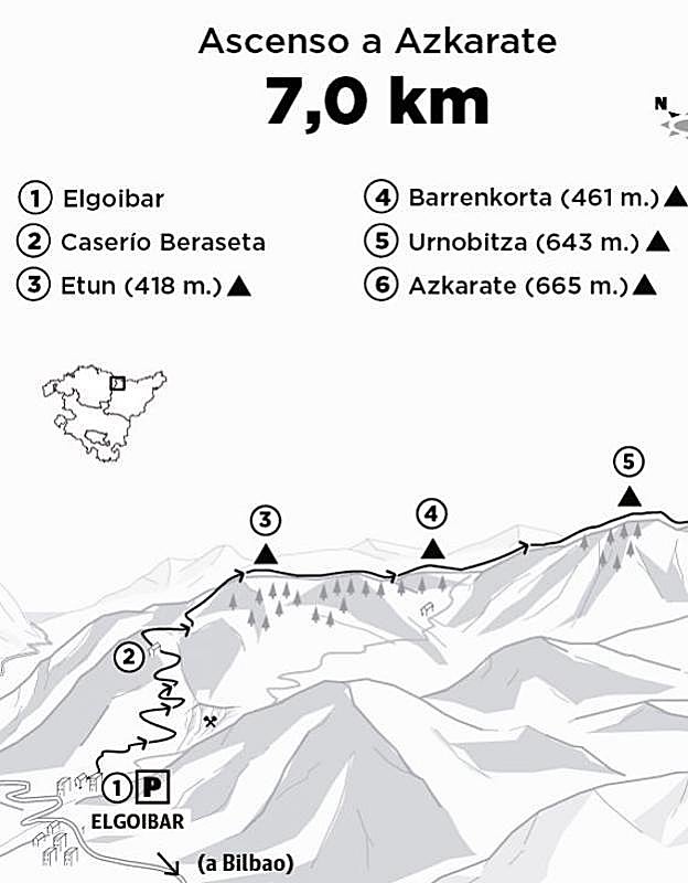 Horario: 3h.30« (1h.40» de ascensión al Urnobitza y 15« más al Azkarate.)
