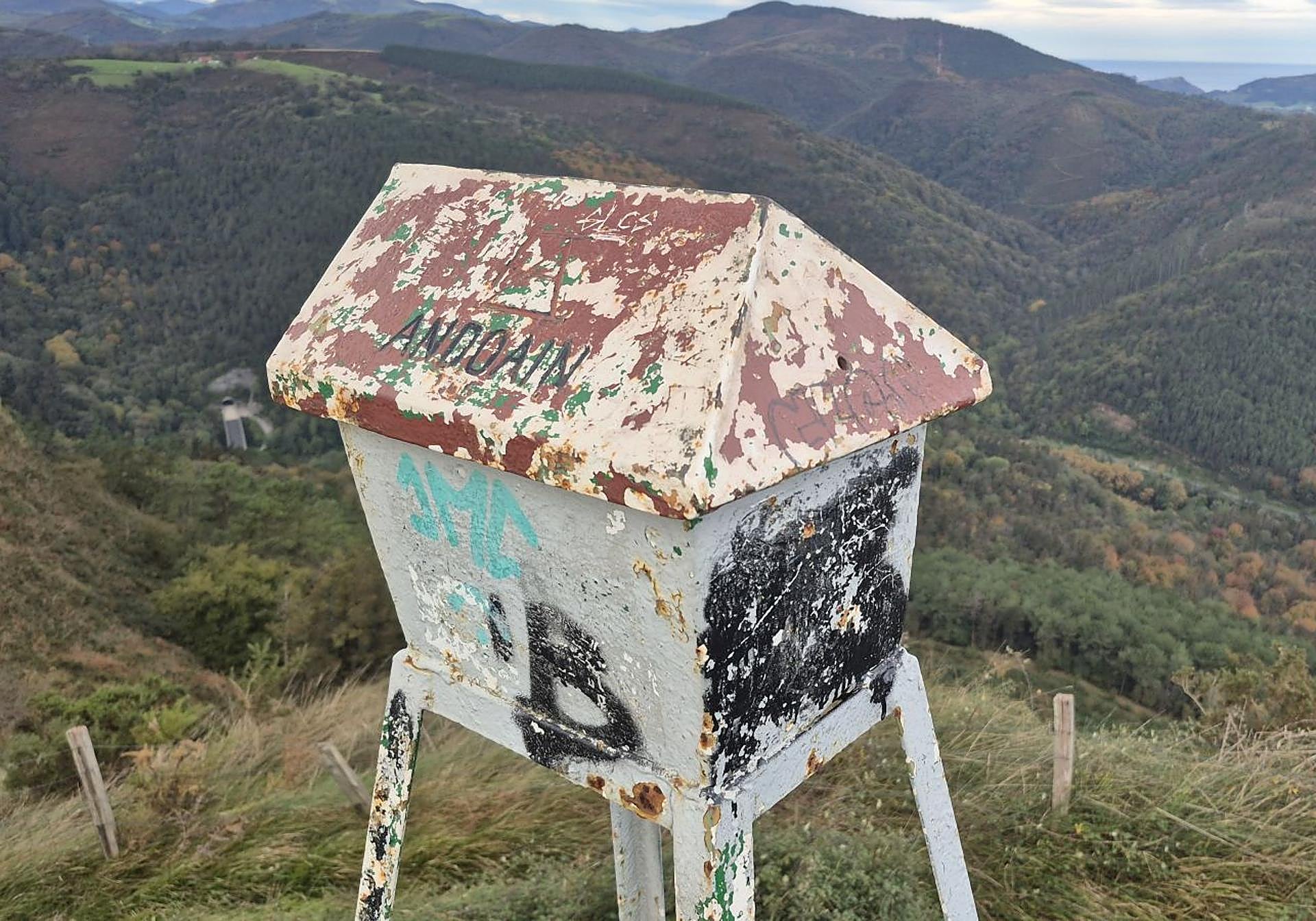 Ascendemos por los tramos de pistas forestales que se convierten en la zona alta de Buruntza en senderos entre árgoma hasta llegar al buzón que nos sitúa el punto más alto del monte que fue testigo de numerosos de eventos como las carreras de coches o de caballos.