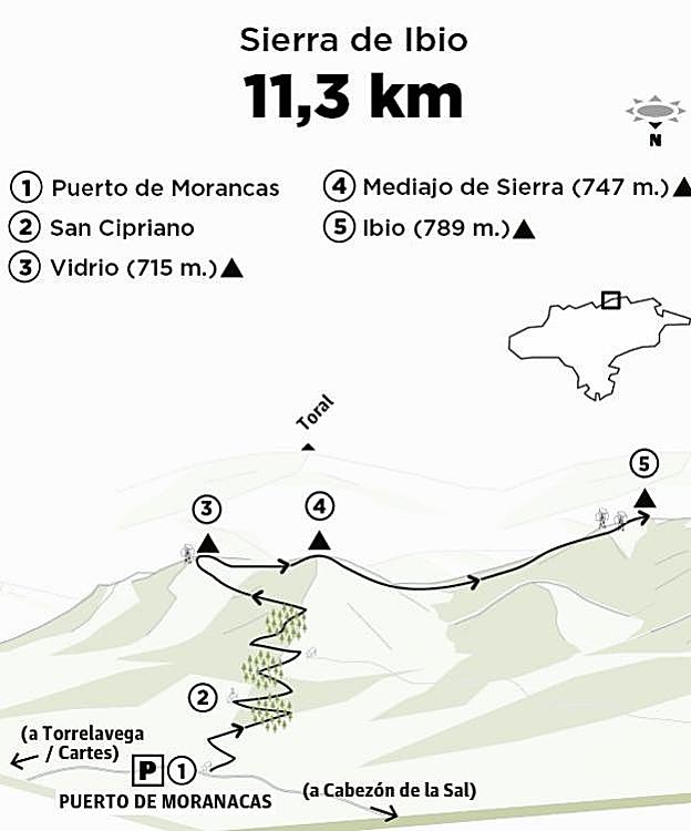 La Sierra de Ibio es una extensa loma pelada y coronada de antenas que destaca entre los valles de los ríos Besaya y Nansa. Por situación y comodidad de subida, es muy frecuentada por los aficionados a la montaña y a la BTT de Cantabria.