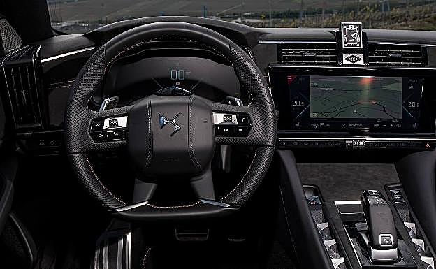 En el interior, los asientos Alcantara Negro/simil cuero con costuras Carmín y Oro combinan con la consola central y el salpicadero, también cubiertos de Alcantara, sumergiendo al conductor en un ambiente acogedor. En el salpicadero, la insignia de aluminio en relieve DS PERFORMANCE LINE ilustra el savoir-faire único de DS Automobiles. Las inserciones de cristal en el mando bajo la pantalla central, realzan el refinamiento hasta el más mínimo detalle. El volante multifunción es de cuero plena flor perforado, con un airbag forrado en cuero y costuras Carmín y Oro.