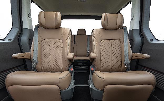 Dispone de seis airbags y todos los asientos cuentan con cinturones de seguridad de tres puntos y reposacabezas. El Staria también está equipado con las últimas funciones de seguridad activa y asistencia a la conducción. Las nuevas funciones incluyen, entre otras, asistente anticolisión frontal con asistencia en las intersecciones; asistente de seguimiento de carril y asistente anticolisión en el ángulo muerto.