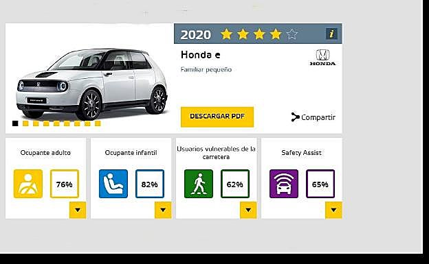 El listado de los diez más seguros lo cierra con cuatro estrellas, el eléctrico de Honda. Carece de algunos elementos de seguridad de última generación como su «hermano» el Jazz, pero es merecedor de una buena calificación general.