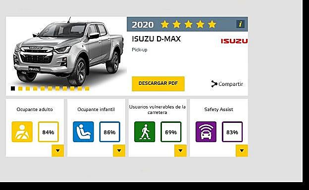 Además de una completa renovación, el modelo Pick Up de Isuzu logra en 2020 cinco estrellas con a su equipamiento de seguridad activa y pasiva así como el paquete integral de ADAS, presente en todas las versiones, incluyendo la de acceso a la gama.