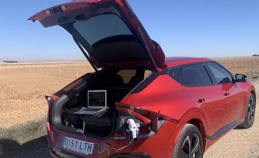 En otro descanso 'fotero', probamos la capacidad bidireccional del cargador V2L, con el que el ordenador llegó casi al máximo en poco tiempo. También circulamos por Alcázar de San Juan, Tomelloso, Mota del Cuervo y por Quintanar de la Orden, no pudiendo zafarnos del indudable encanto de Aranjuez (por algo era la ciudad vacacional de los Reyes). Y llegó el turno de la vuelta a Madrid, realmente satisfechos. Total: 569 kilómetros recorridos con una sola recarga.