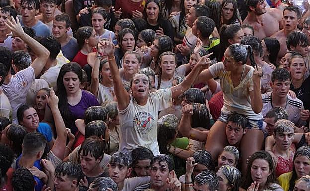 Una vez prendida la mecha de las fiestas, se ha desatado la locura de los cientos de errenterriarras y visitantes aglotinados en la Herriko Plaza