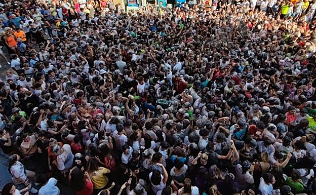 Desde una hora antes de dar comienzo de forma oficial a las Madalenas 2022, las cuadrillas se han agolpado en los distintos rincones de la villa para acudir en grupo a la llamada del chupinazo. Nada de elegancia y manos vacías, todo lo contrario. Ropa sucia y vieja y botes de ketchup, mostaza, mayonesa y harina en mano. Pueden pasar dos, cuatro o siete años que la tradición nunca se pierde. En segunda fila, y a unos metros de distancia para evitar sustos mayores, el público miraba sus relojes.
