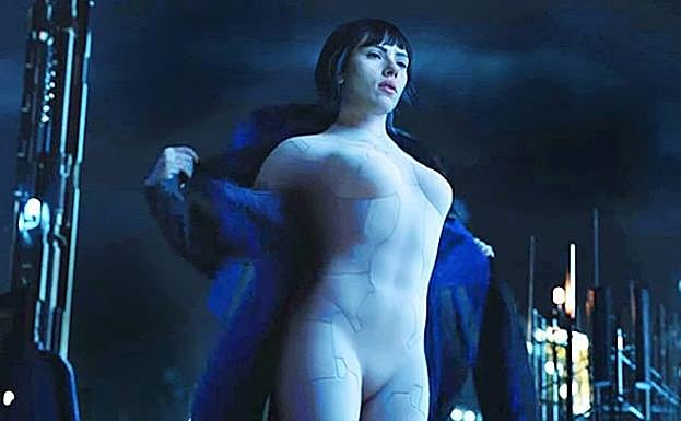 Las fronteras entre lo humano y lo artificial se diluyen en una cinta que primero fue anime. La protagonista, una cyborg con cerebro humano, se desenvuelve en un entorno futurista de estética punk. Hasta se copian los neones de 'Blade Runner'.