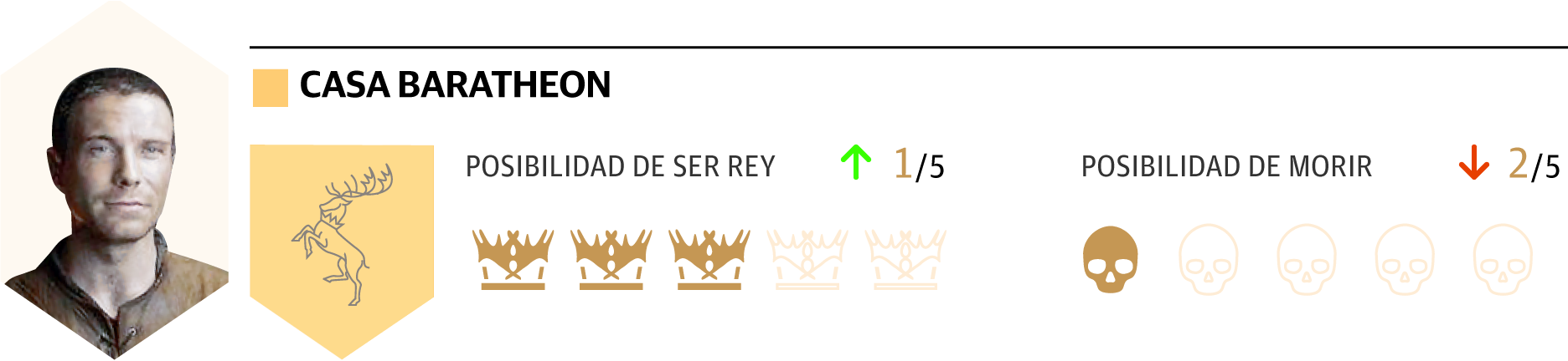 1. Es un secundario y le gusta ese papel. Cree que el verdadero rey ha de ser Jon Snow. Se ha retirado para vivir en tranquilidad con su familia.