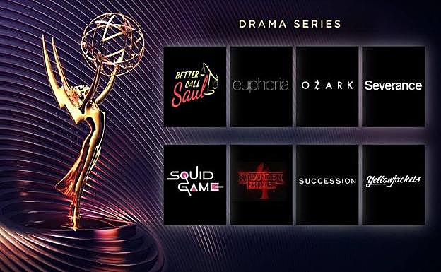'Succession' deberá competir en esta ocasión con otros pesos pesados como 'Better Call Saul' y 'Ozark', con varias temporadas a sus espaldas y todavía sin haber obtenido ningún reconocimiento en estos lares. Los protagonistas de las tres producciones (Brian Cox, Jeremy Strong, Jason Bateman, Bob Odenkirk y Laura Linney) también han sido escogidos para competir en los principales apartados de interpretación. Apple TV se cuela en la categoría con una de sus propuestas más sorprendentes, 'Severance', la ficción dirigida por Ben Stiller. 'Stranger Things' y 'Euphoria' también se incluyen en el listado. Entre las actrices protagonistas que competirán por la estatuilla están Jodie Comer y Sandra Oh (por 'Killing Eve') y Reese Witherspoon ('The Morning Show'), que toma el relevo de Jennifer Aniston, que este año se irá de vacío. Zendaya tratará de repetir su hazaña de hace dos años. Esta vez no acudirá sola a los premios. Sydney Sweeney compite como intérprete de reparto. Lee Jung-jae, protagonista de 'El juego del calamar', puede dar la sorpresa de 2023.