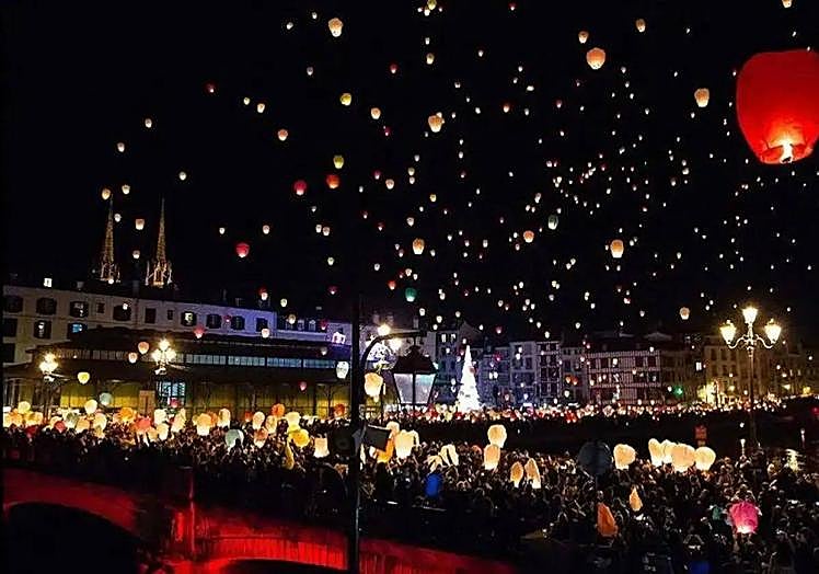 Las localidades de Iparralde están ya iluminadas y son muchas las que tienen en marcha ya sus mercados navideños. Destaca el programa de Baiona con sus farolillos que iluminan la noche. Y además este es el último año que se podrán ver ya que a partir del año que viene se cancelará este evento por motivos de medio ambiente y seguridad. Las dos sesiones previstas para este año serán este sábado, 9 de diciembre y el siguiente, 16 de diciembre. El día 9 se soltarán farolillos multicolores sobre un tema de dibujos animados y el día 16, los farolillos serán blancos con un tema musical tradicional. Para conseguir las linternas hay que acercarse a Carreau des Halles (plaza al lado del mercado) para obtener una linterna.