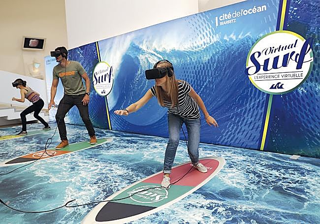 Gracias al juego Virtual Surf, puedes surfear olas muy conocidas como Mundaka, Belharra, Teahupoo… ¡Créete un surfista profesional y marca puntos!